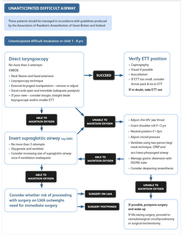 Frerk, C., Mitchell, V.S., McNarry, A.F., Mendonca, C., Bhagrath, R., Patel, A., O'Sullivan, E.P., Woodall, N.M. and Ahmad, I., 2015. Difficult Airway Society 2015 guidelines for management of unanticipated difficult intubation in adults. BJA: British Journal of Anaesthesia, 115(6), pp.827-848.