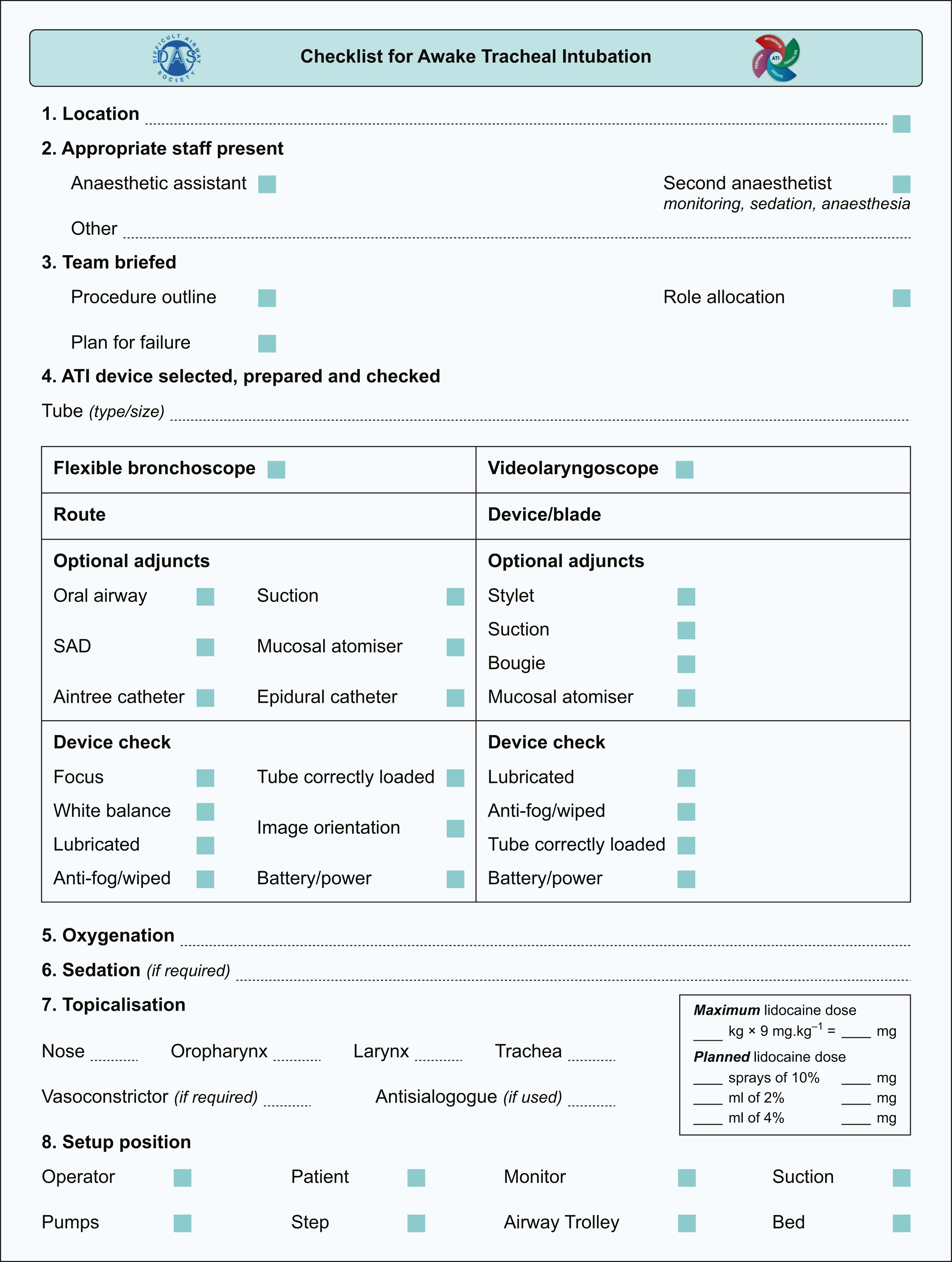 • Difficult airway - (OPA / NPA / SGA / X-blade and stylet / bronchoscope and Aintree)
