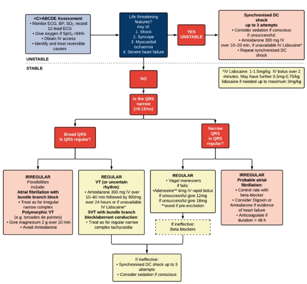 Tachyarrhythmia is likely to be a rare occurrence in a population of young, healthy, pre-screened Service Personnel. However, it may still be encountered on operations due to undiagnosed cardiac conditions, intercurrent illness, allied nation forces or amongst civilian populations.